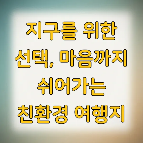 친환경 여행은 더 이상 특별한 사람들의 이야기가 아니에요. 우리 모두의 작은 관심과 실천으로 지구를 위한 의미 있는 발걸음을 내디딜 수 있습니다. 다음 여행지를 고를 때, 잠시 지구를 생각하는 시간을 가져보는 건 어떨까요?
